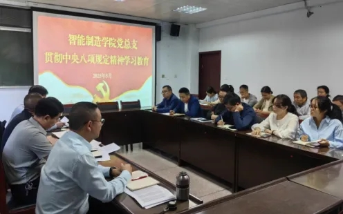 5月11日,智能制造学院党总支开展违反中央八项规定精神警示教育会。党总支书记秦冲,全体教工党员参加会议,会议由党总支副书记、院长霍海波主持。
